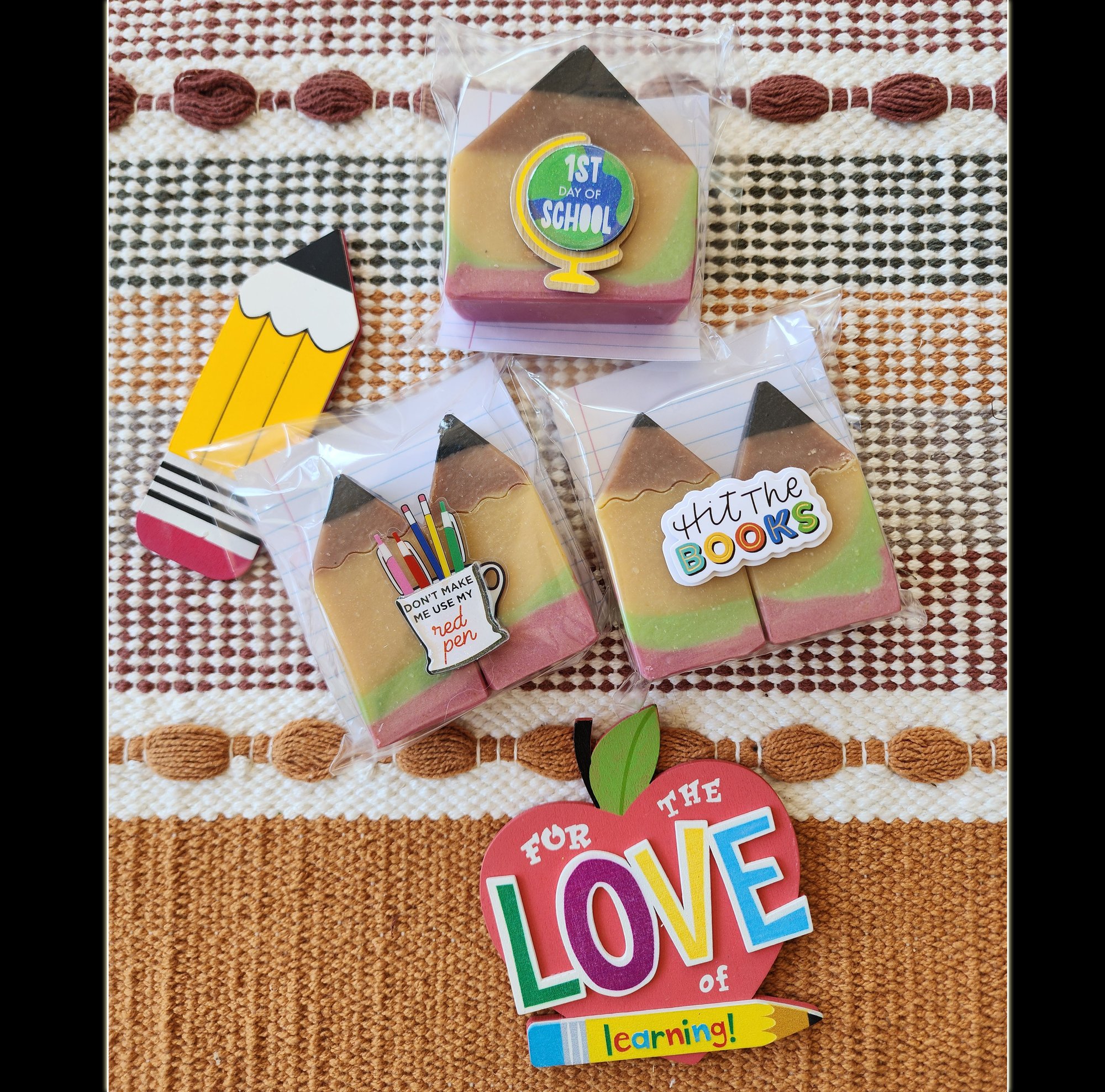 Enjoy a fresh, clean start to your school year with these fun #2 pencil themed soaps. Perfect for your favorite teacher or student, these creamy and rich goatmilk soaps are made with a soothing blend of lime, french lavender, lilly and patchouli.