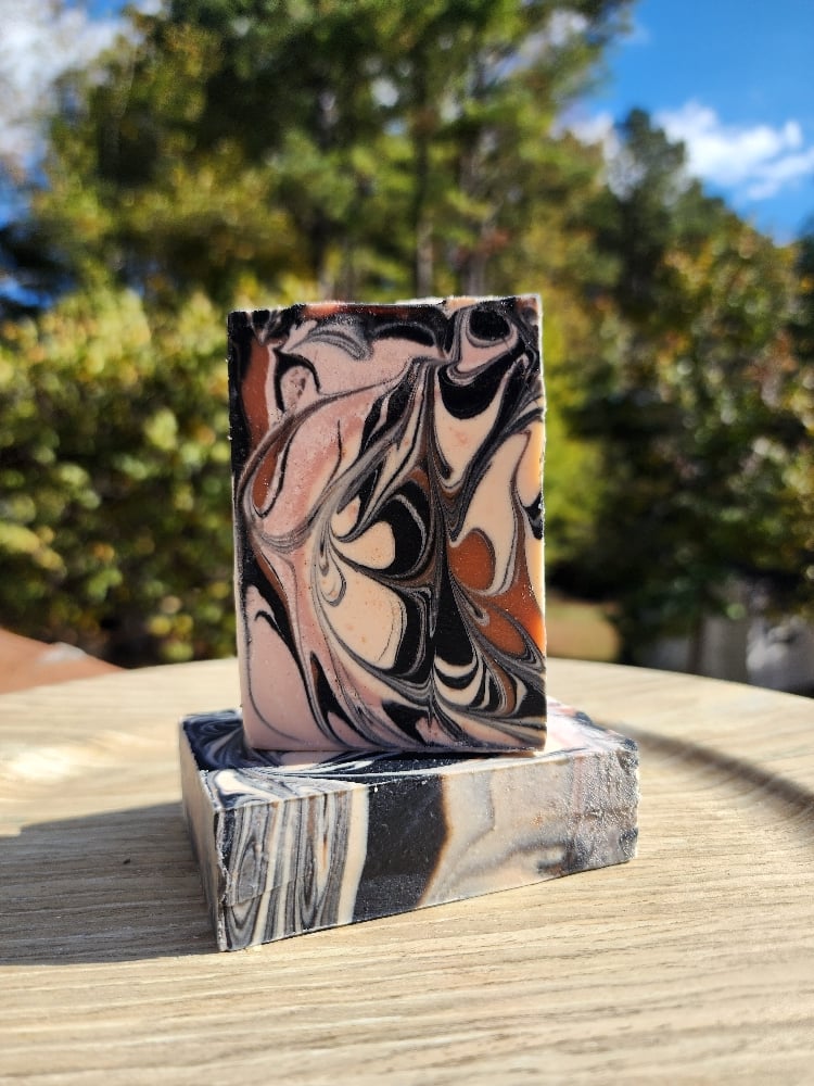 goat milk, saponified olive oil, coconut oil, sustainably sourced palm oil, beef tallow, shea butter, castor oil, activated bamboo charcoal, colloidal oats, kaolin clay, fragrance oil, titanium dioxide, mica.